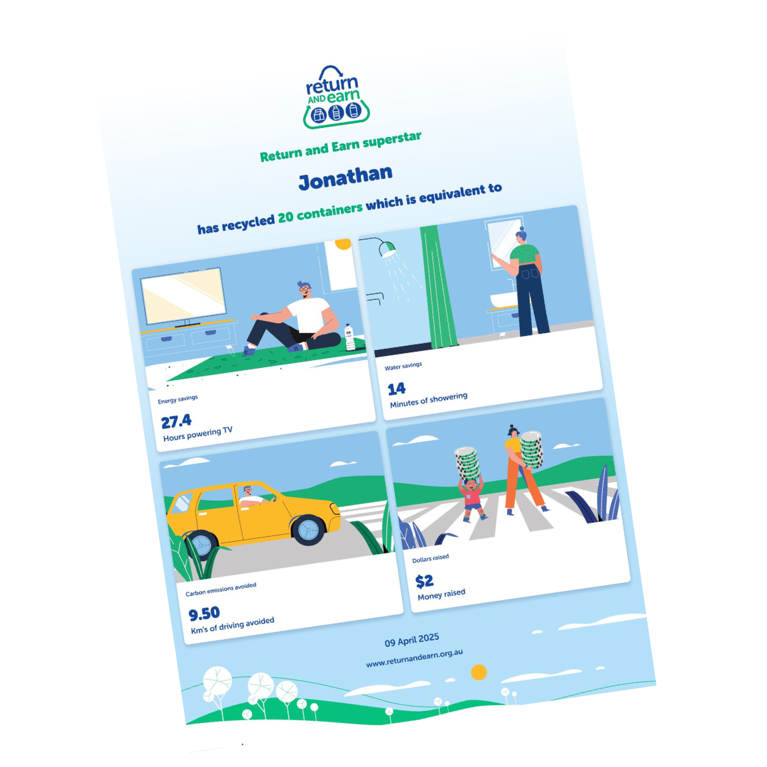 Every drink container recycled through Return and Earn helps to save water, energy and carbon emissions, by reducing the need for raw materials in the production of new drink containers.
